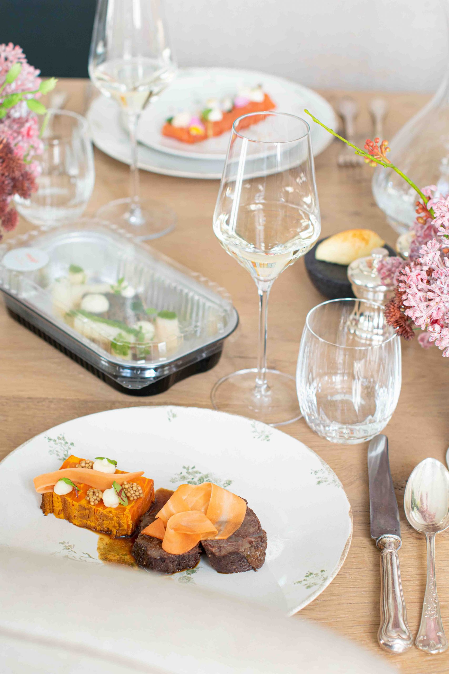 C’est le confort sans effort, le luxe dans l’assiette sans le casse-tête. La présentation des plats à emporter est telle qu’on la poserait devant vous au restaurant, le goût vous emmène immédiatement ailleurs, mais pas chez le traiteur : aucune saveur n’est standardisée. La cuisine c’est de la chimie. La présenter comme restaurant, c’est de l’ingénierie. Les créatrices de la Bonne étoile ont mené des dizaines de tests pour aboutir à des propositions de menus conçus pour être présentés et dégustés comme au restaurant. Des plats qui voyagent dans l’imaginaire, sans frontières à la cuisson des horizons, dominés par l’excellence, et dressés dans une barquette. Au bureau, chez soi, où que l’on soit, on dresse l’assiette en un seul geste, avec une simple spatule. C’est la gastronomie surmesure, avec une dimension « chef à la maison ». On commande l’accord mets & vins si on en a besoin, avec du personnel si on en a envie, avec toutes les options possibles, de la décoration de la table par Antoinette, au fleurissement de la maison.
