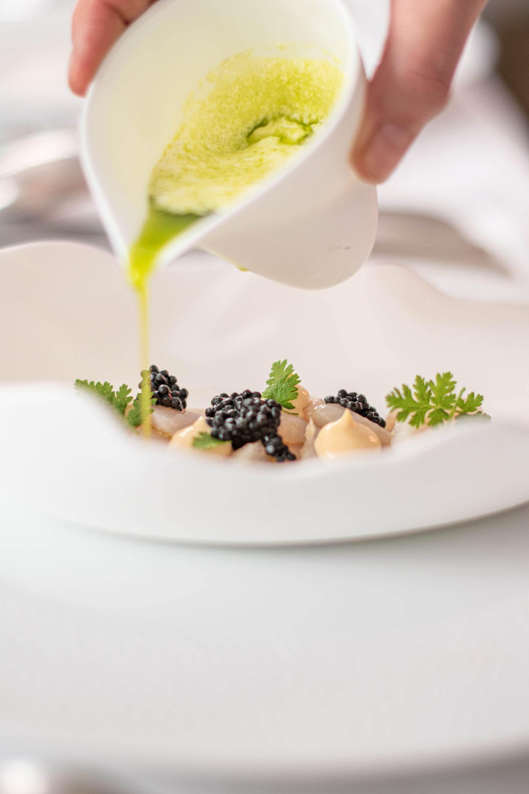 Sa signature est intuitive ; la cheffe part souvent d’une base classique, puis elle digresse. C’est une cuisine d’assemblage de goûts et de structures, d’étonnements et de textures. Isabelle joue de la déconstructionreconstructionde plats connus devenus inattendus, elle excelle dans l’exploration et l’interprétation. Utilisant beaucoup d’huiles essentielles comestibles, elle mélange les fleurs et les desserts, les plantes et les alchimies de matières. Une approche riche en émotions, respectueuse du produit qui est toujours, on l’a compris, de première qualité.