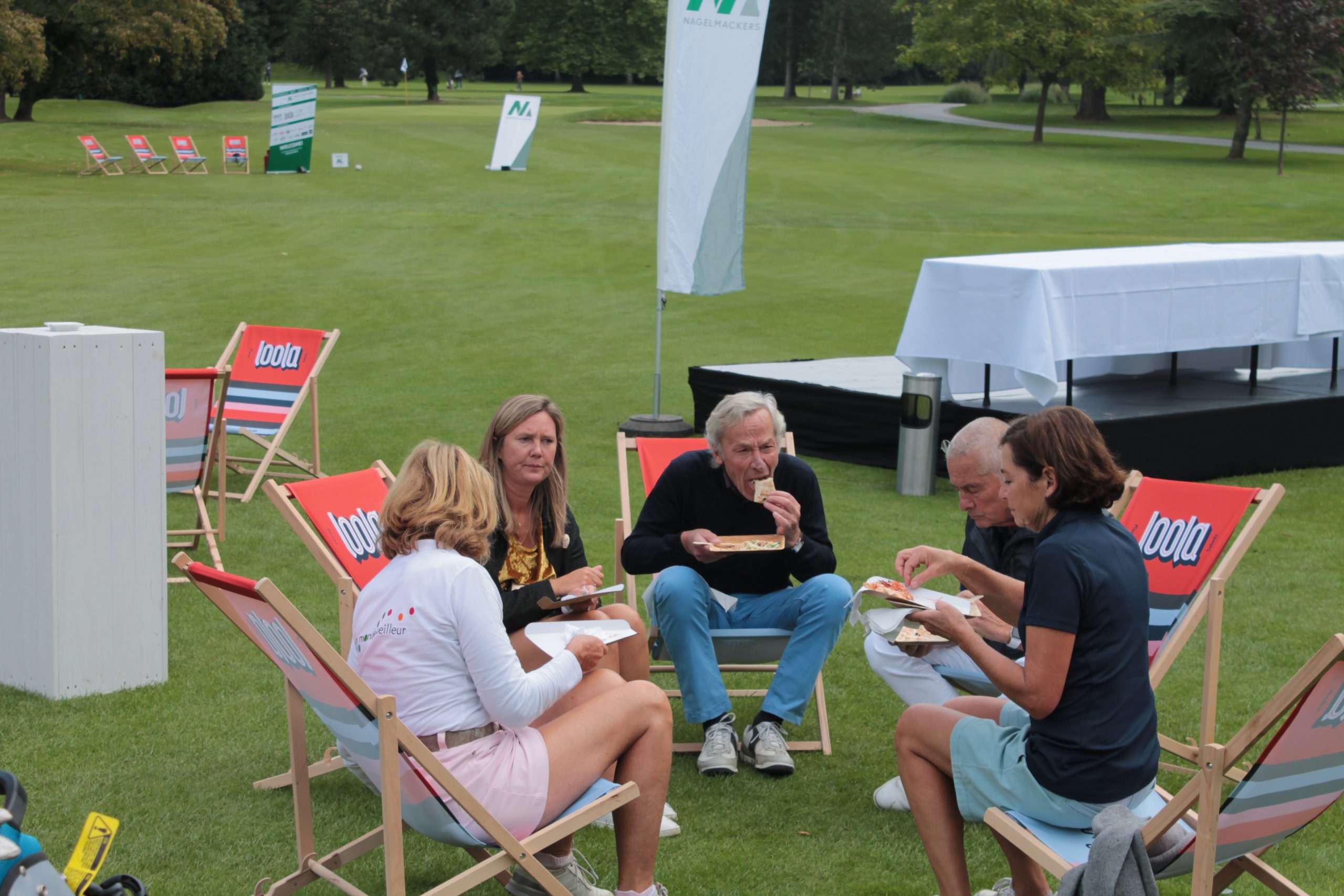 Certes, le soleil a été timide en début de journée, mais dès la fin de matinée, c’est sous un ciel d’été que notre événement s’est prolongé. Les quelque 120 joueurs présents ont pu, une fois de plus, attester de l’originalité du concept, de la convivialité de l’infrastructure, de la saveur des pizzas de LOOLA, des bars bien agrémentés par les vins et les champagnes de Conseils Vins et par les gin de Gaugin, mais aussi de la qualité du terrain, de la bonne humeur des organisateurs et surtout, de la magnifique table des prix dotée, entre autre par Nagelmackers, Immo Le Lion, Diamanti per Tutti, Mia Zia, Rose-Marie Warzee et Segafredo.